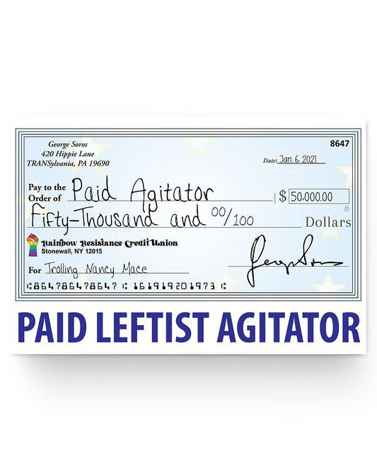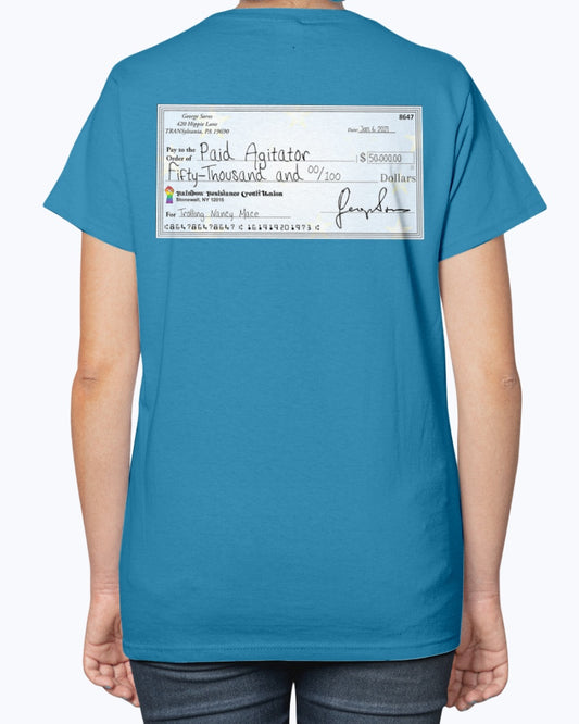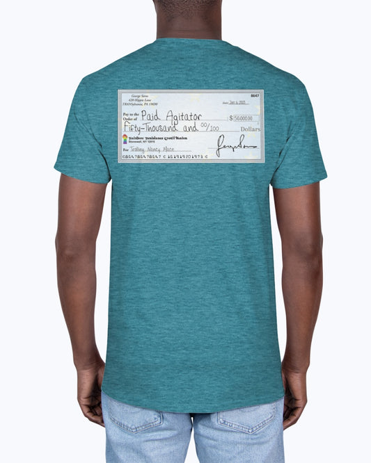 Paid Leftist Agitator Short Sleeve Unisex T-Shirts – Nancy Mace x George Soros Check (Special Edition)