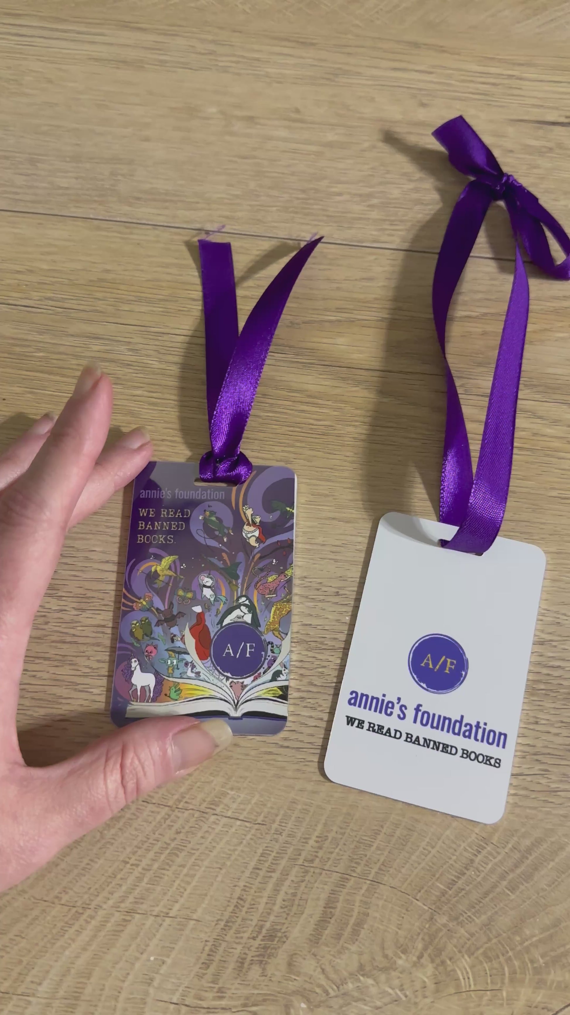 This double-sided sublimated metal bookmark / ornament features Annie’s Foundation’s magical full-color artwork on one side and their official logo with We Read Banned Books on the reverse.