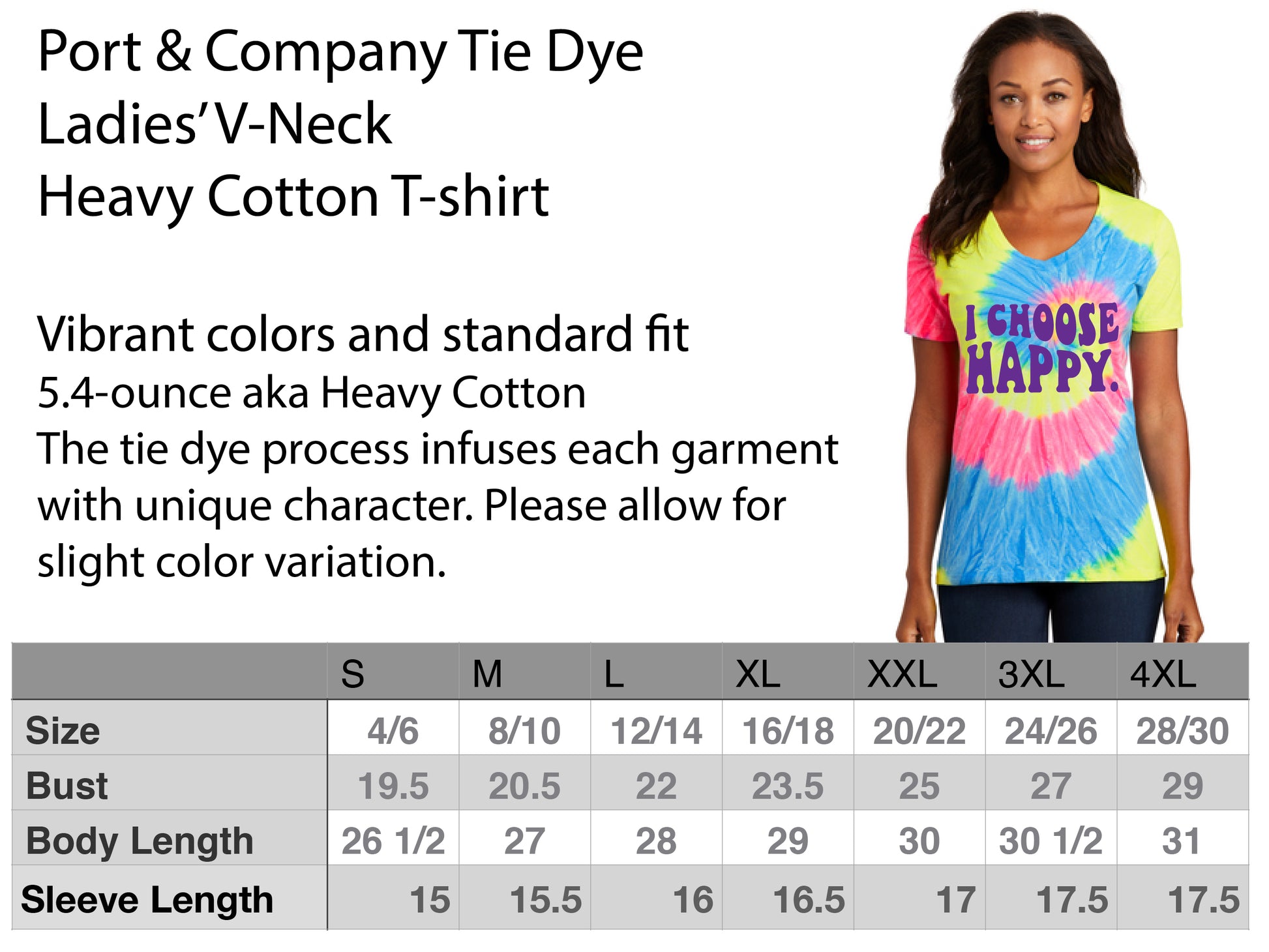 I Choose Happy. Tie Dye Short Sleeve T-shirt (Unisex or Ladies V-Neck)