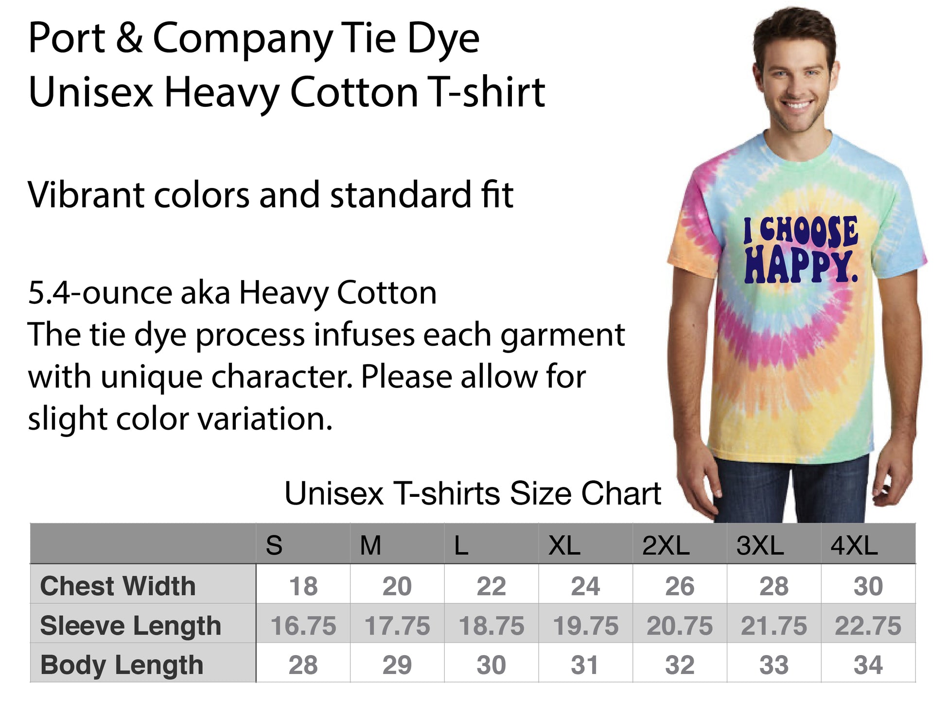 Elevate your style with a touch of retro positivity! Our "I Choose Happy." Tie-Dye T-Shirts are more than clothing; they're a statement of joy and optimism.