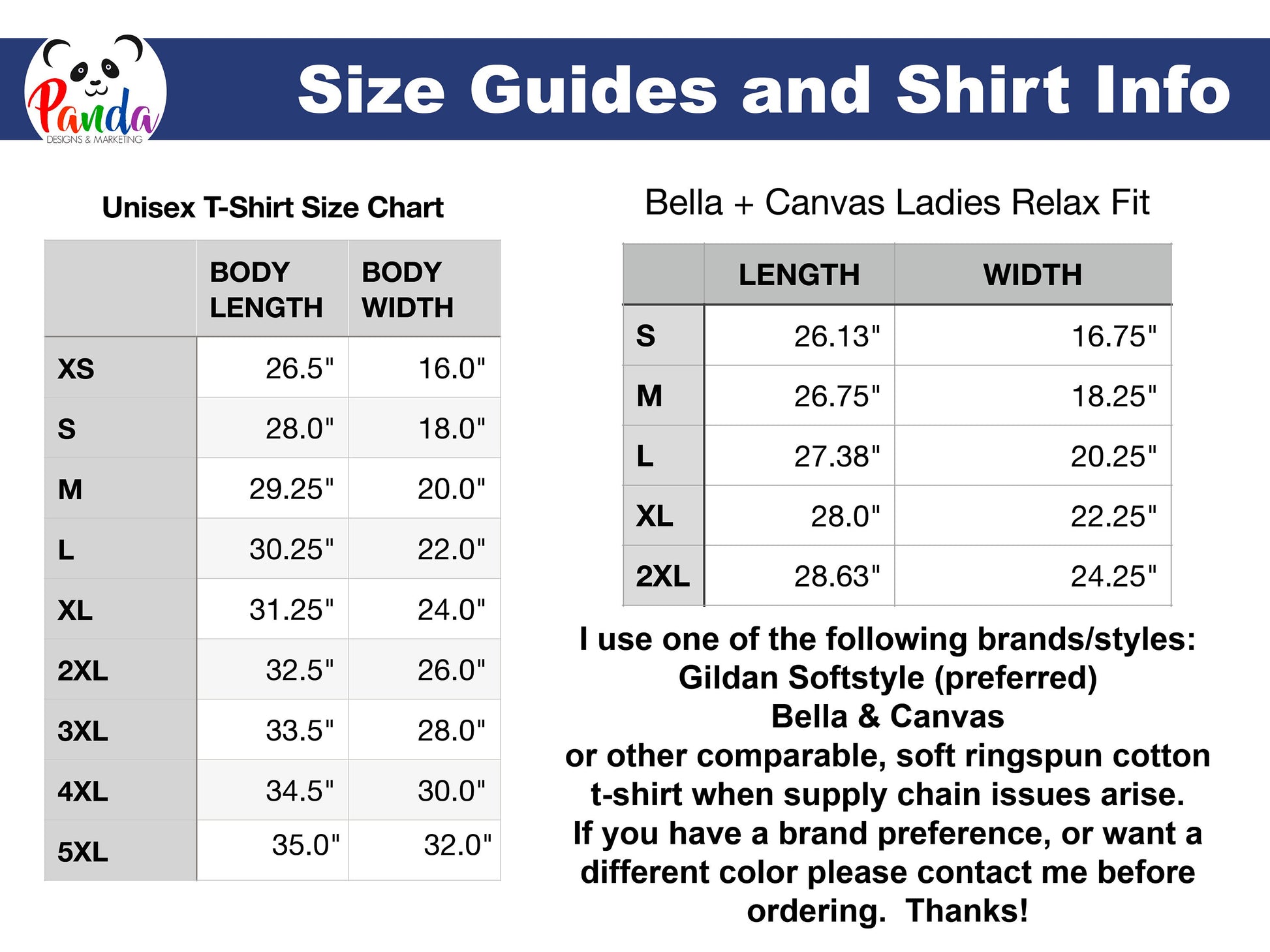 While I make every effort to have colors in stock, with supply chains the way they have been, I may need to substitute the brand in order to get the color and size that you request. If I need to make a substitution I will contact you. I kindly ask that you respond within 24 hours so that your shipment is not delayed.