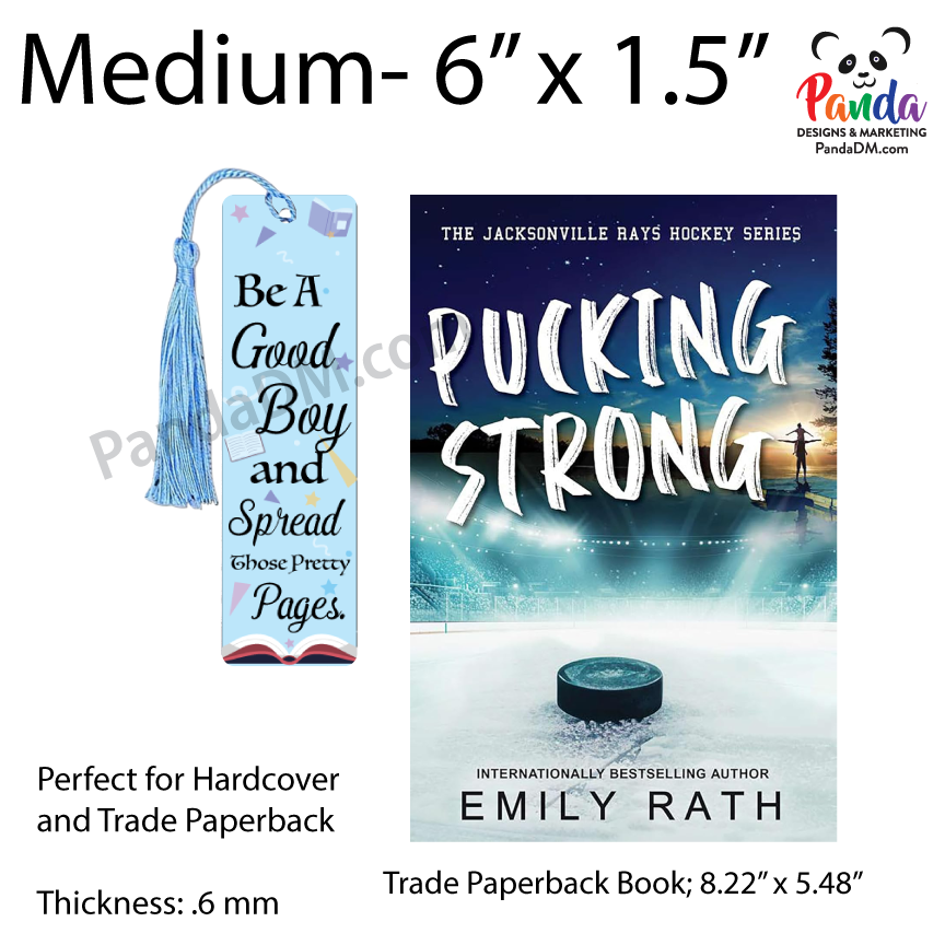 Medium – 6” × 1.5” - The perfect size for almost any book! Especially perfect fit for trade paperbacks.