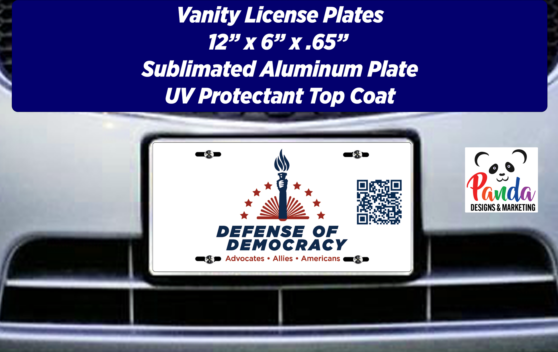 Join the Movement: Order your Defense of Democracy Vanity License Plate today and be a driving force for positive change. Show your dedication to democracy, public education, and inclusivity, one vehicle at a time.