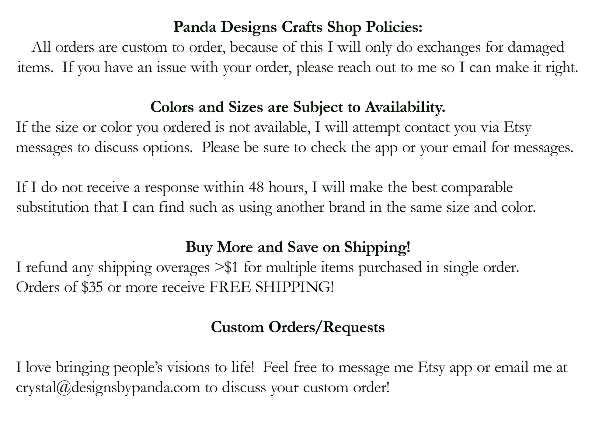 While I make every effort to have colors in stock, with supply chains the way they have been, I may need to substitute the brand in order to get the color and size that you request. If I need to make a substitution I will contact you. I kindly ask that you respond within 24 hours so that your shipment is not delayed.
