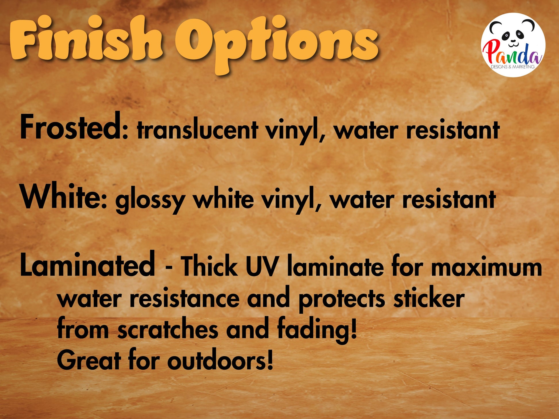 These vinyl stickers come printed on Frosted (translucent) or Solid White Glossy Vinyl.