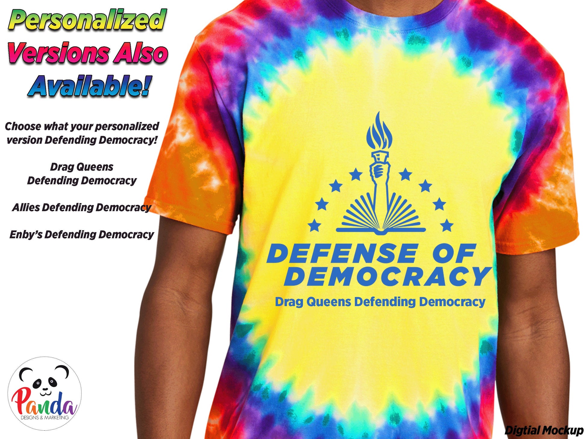 Show your support for democracy and LGBTQ+ rights with our vibrant and unique Defense of Democracy Tie Dye Pride Shirt.