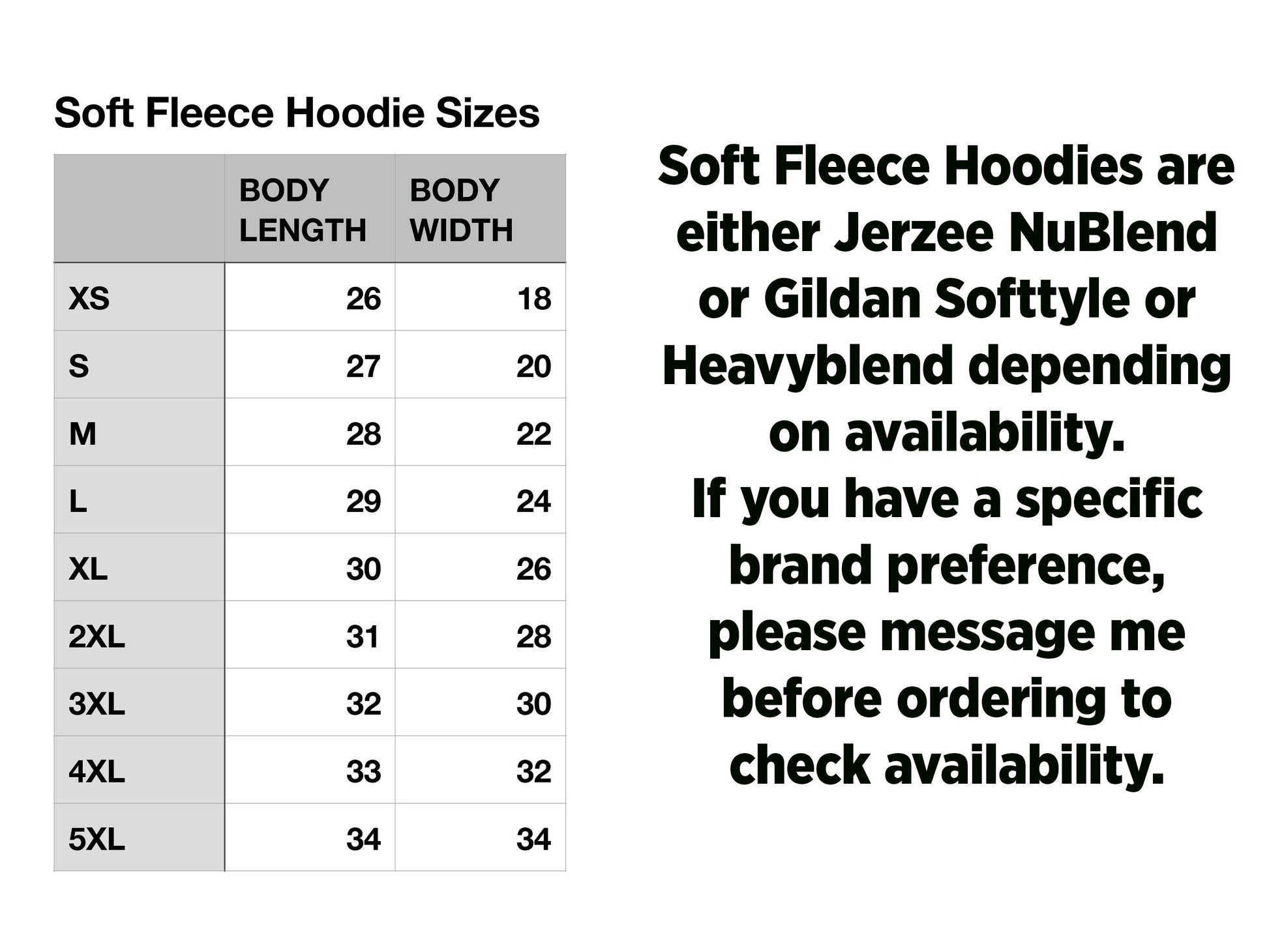 Due to supply chain issues, hoodies might be one of several different brands including Gildan Softstyle (Preferred) or Gildan Heavy Blend, Jerzee Nublend, or another comparable brand. All are very similar in style, fabric content, feel, and size. If you have a specific brand that you prefer, please contact me before ordering so I can check with my suppliers to see if that is available in your size and color.